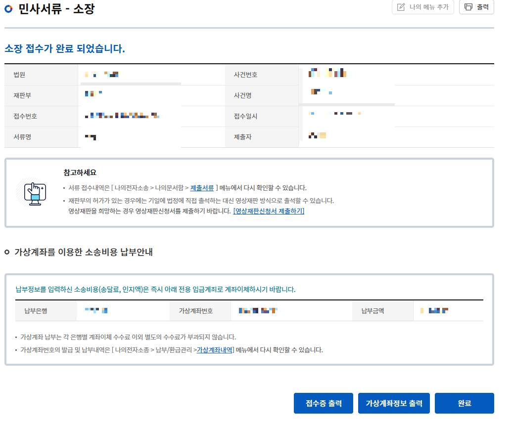 미리 서류를 준비해 놓고 소장을 진행하신다면