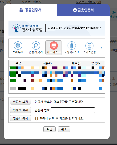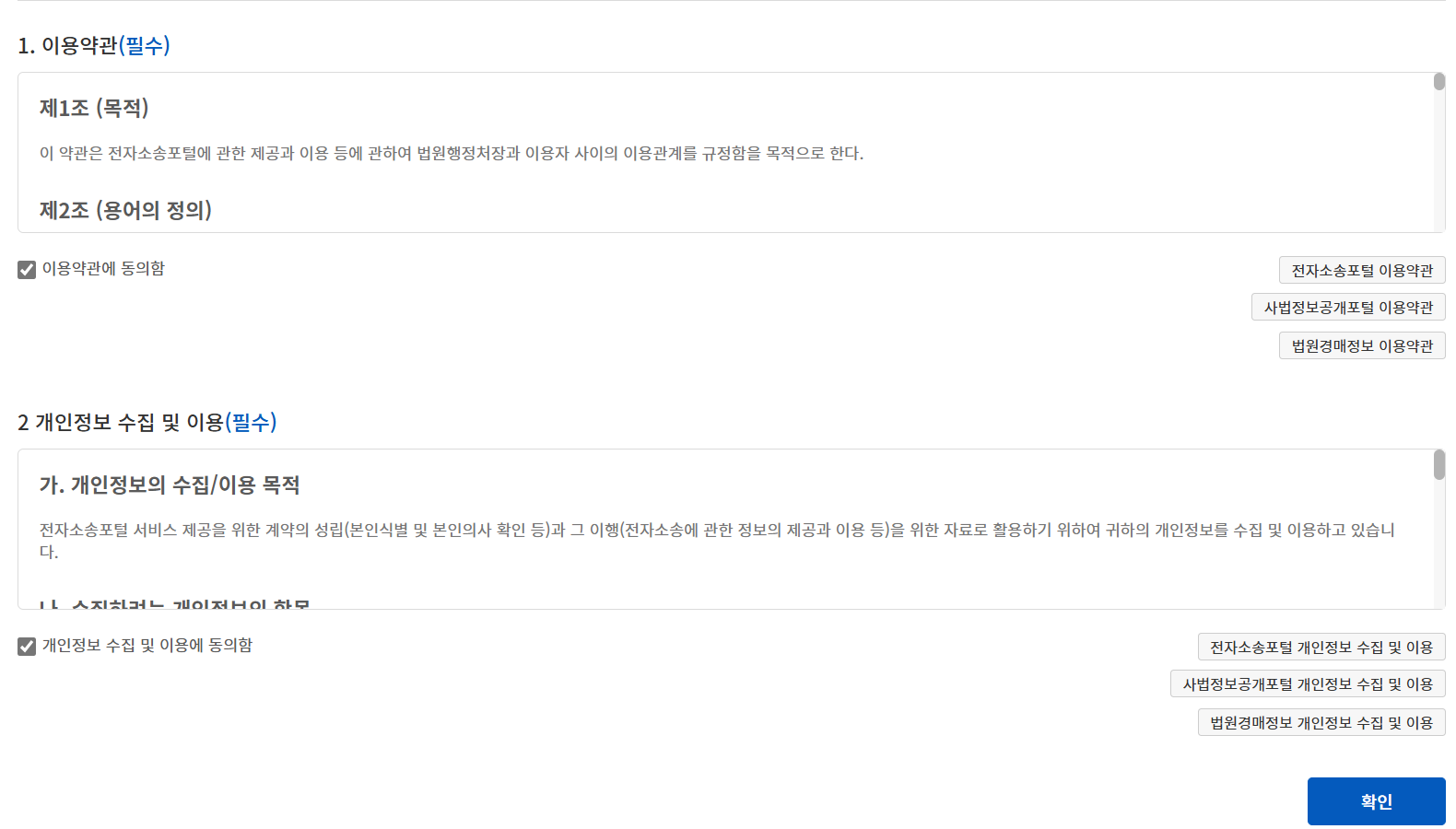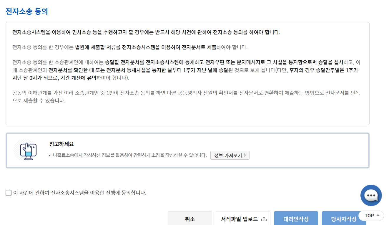 여러 전자소송 동의에 체크한 후