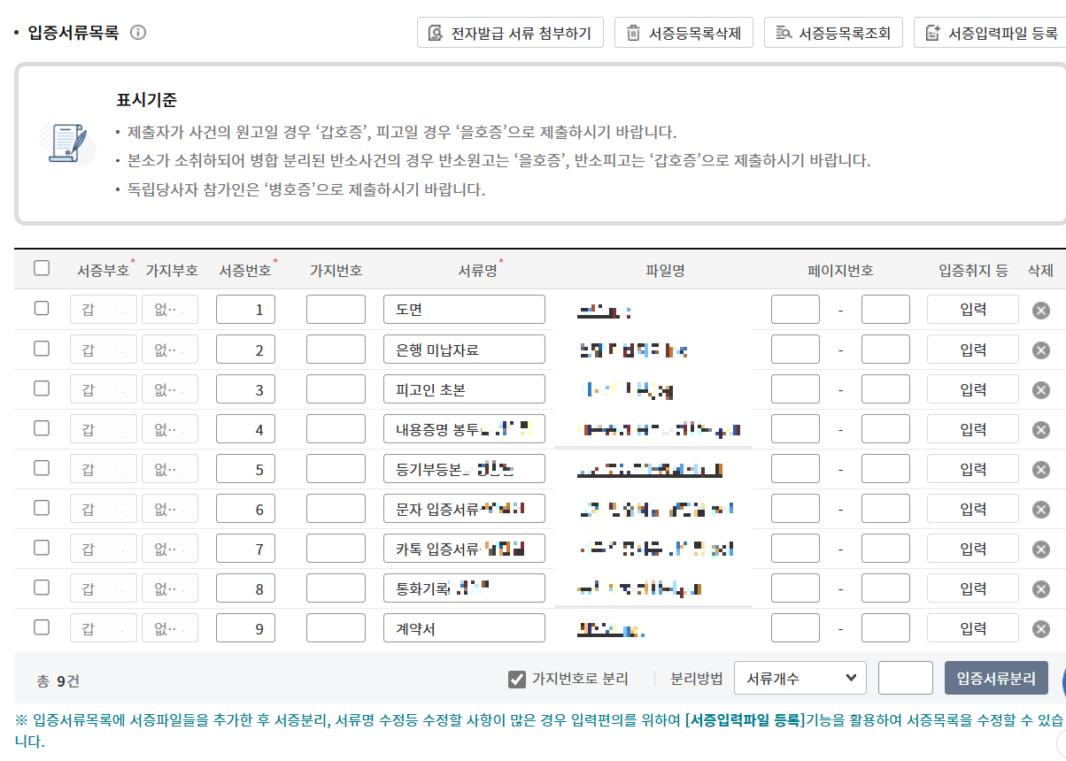 특히, 첨부서류는 10개로 제한되기 때문에