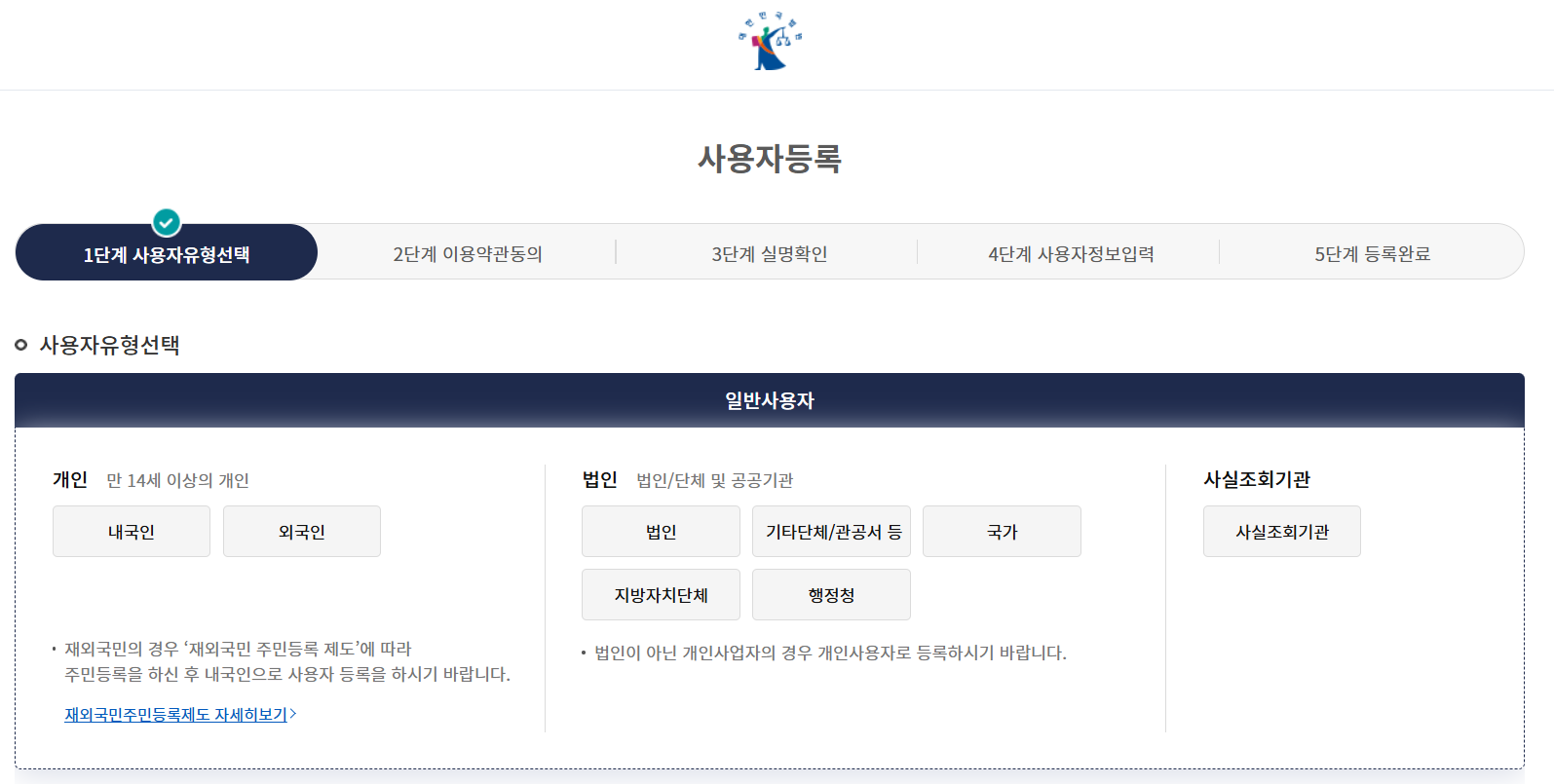 먼저 개인/법인/사실조회기관 중 해당하는 곳을 클릭합니다.