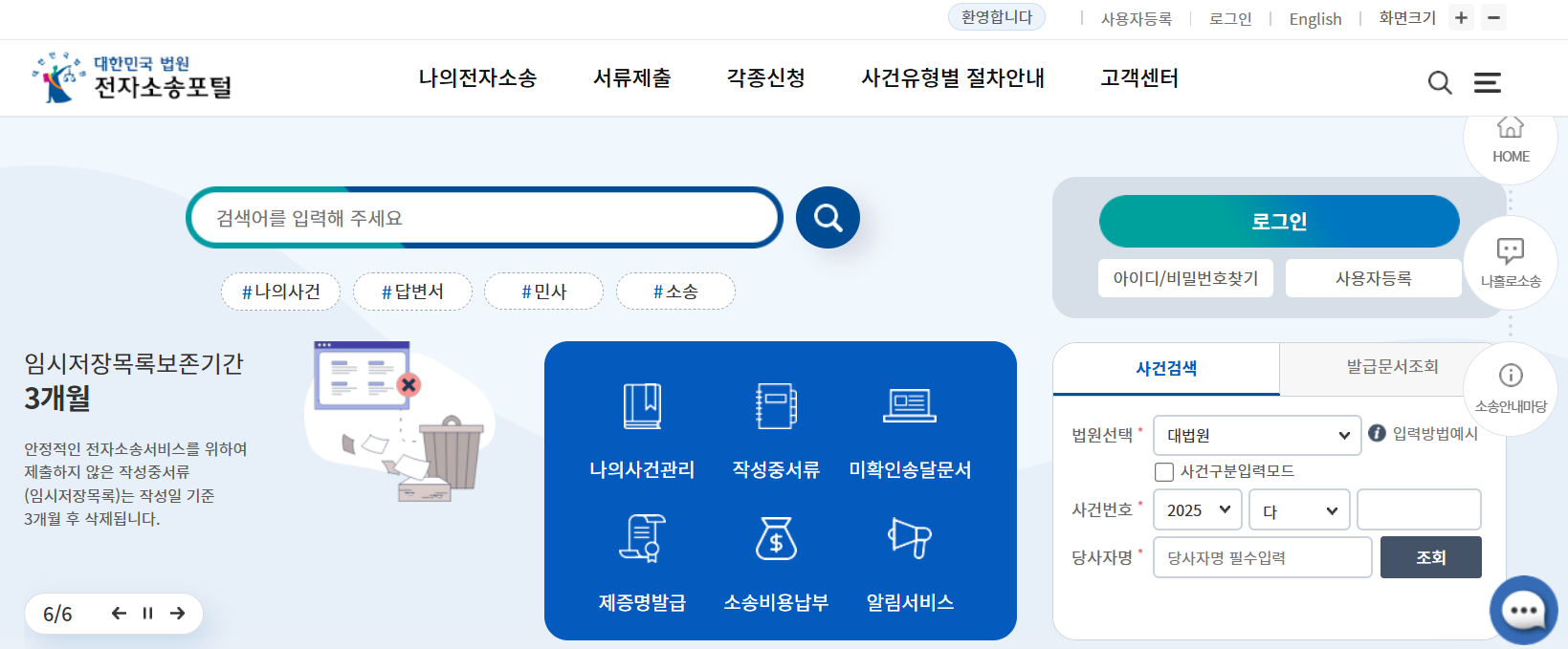 전자소송신청 접수가 가능합니다.