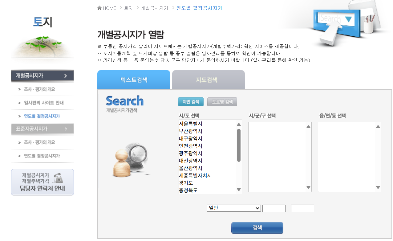 토지 개별공시지가는 부동산공시가격 알리미에서