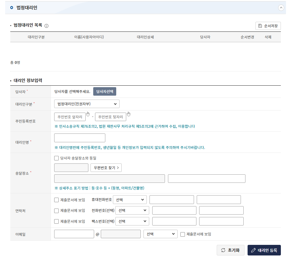 만약 당사자가 신청하는 게 아니라 대리인이라면