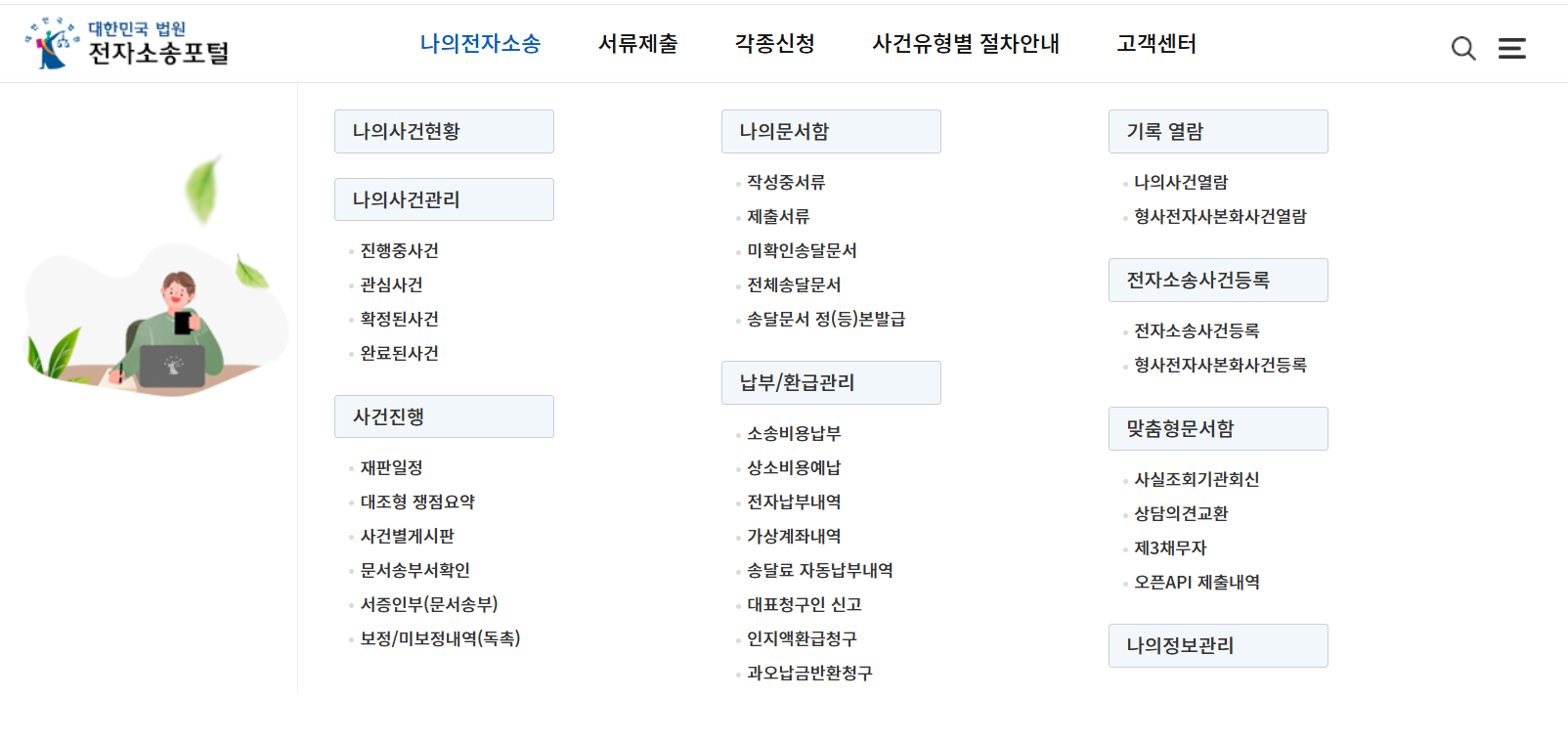 전자소송 사이트에 들어가 봤더니