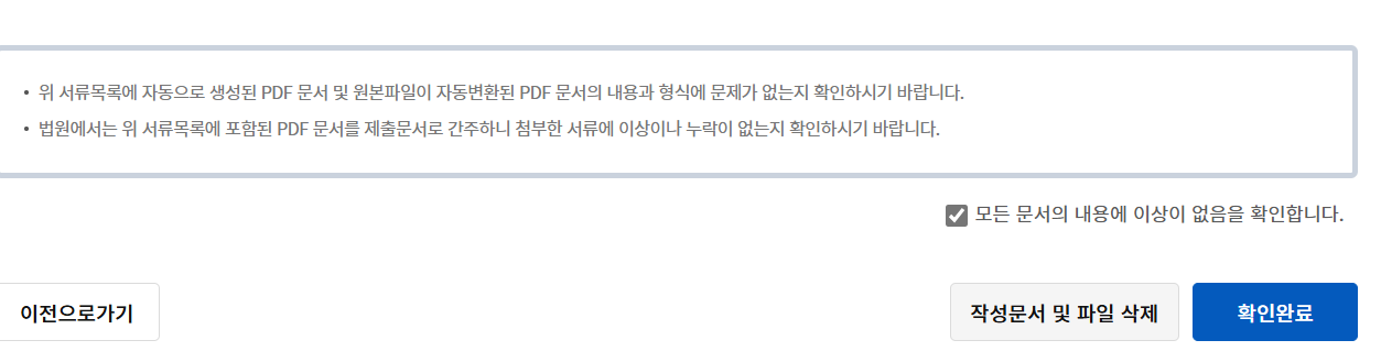 제출했던 문서에 이상이 없으면 '확인완료'를 클릭합니다.