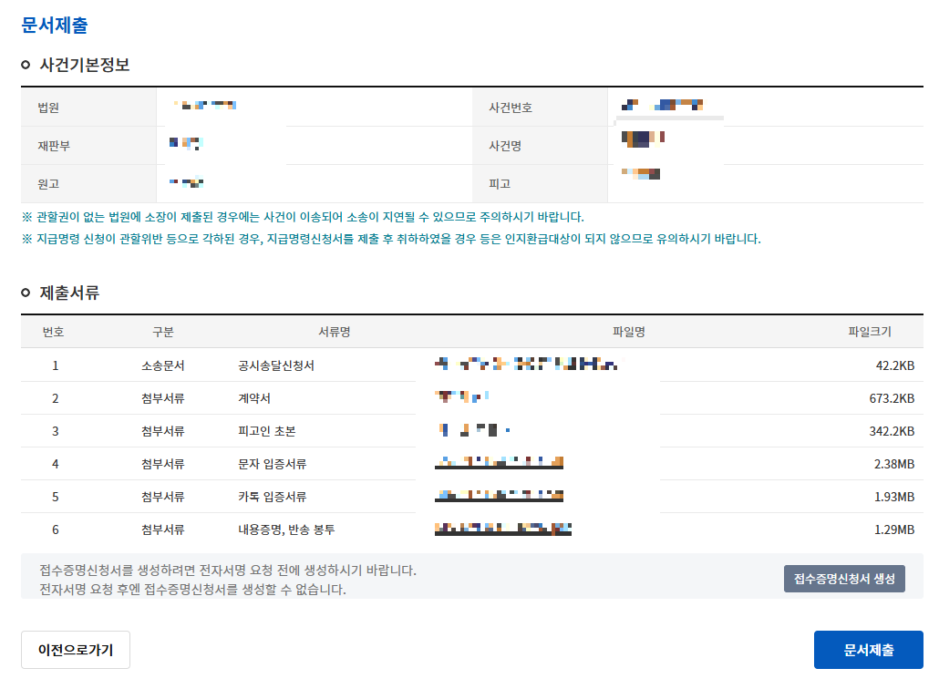 마지막으로 문서제출을 확인하신 후