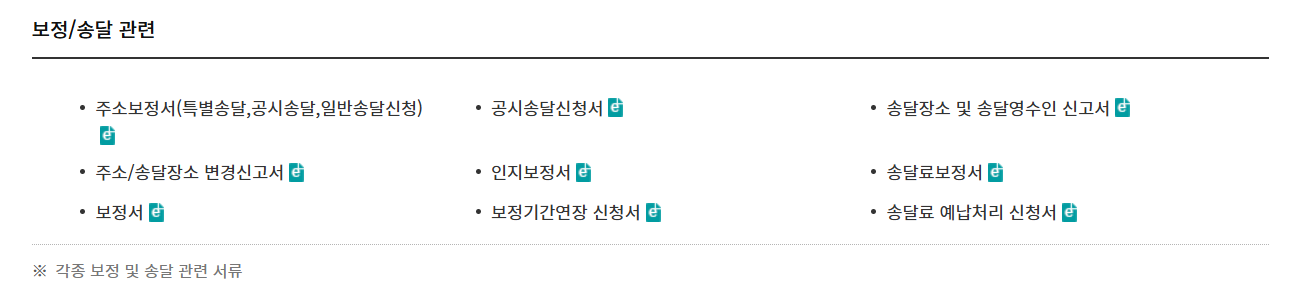 그 중 보정/송달 관련의  '공시송달신청서'를 선택합니다.