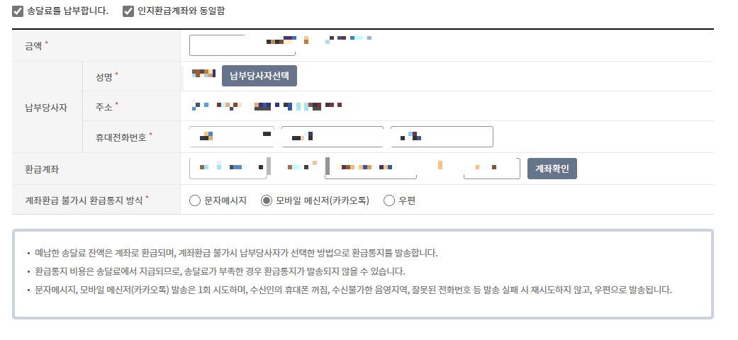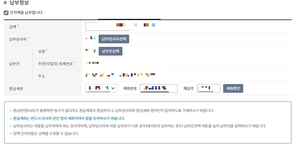 금액과 납부당사자를 적습니다.