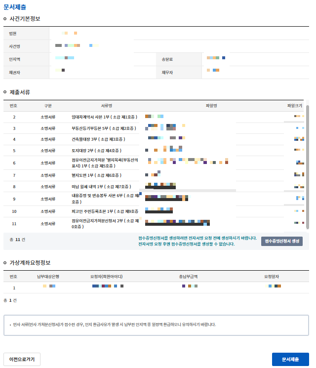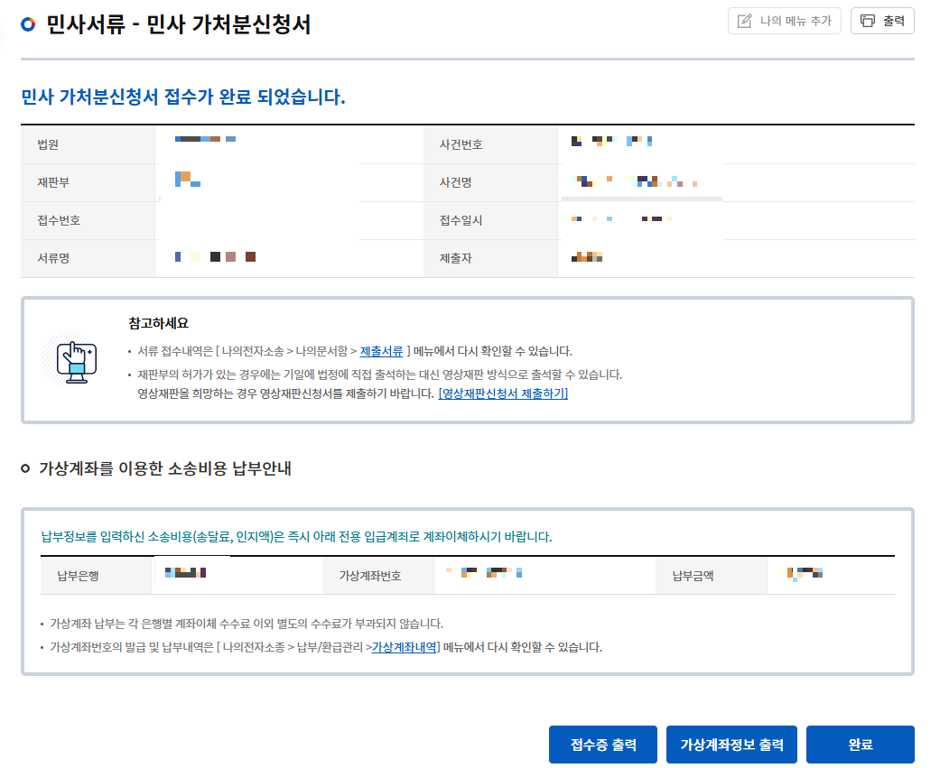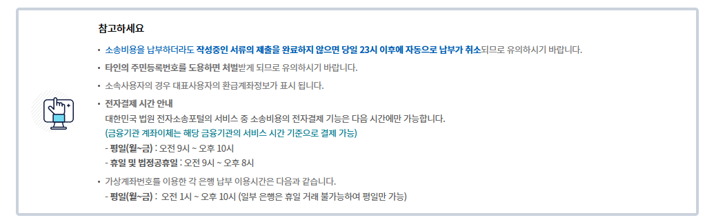계좌이체, 신용카드는 소송비용의 2.14% 수수료가 부과되고,