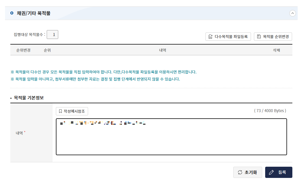 목적물의 기본정보를 입력합니다.