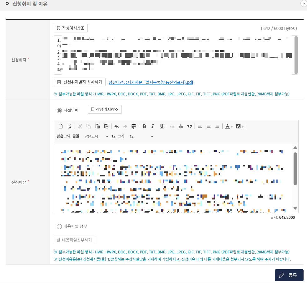 보정처분 관련 신청 중