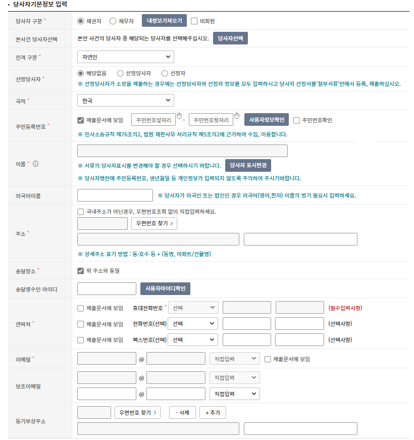 당사자인 채권자와 채무자의 기본정보를 입력합니다.