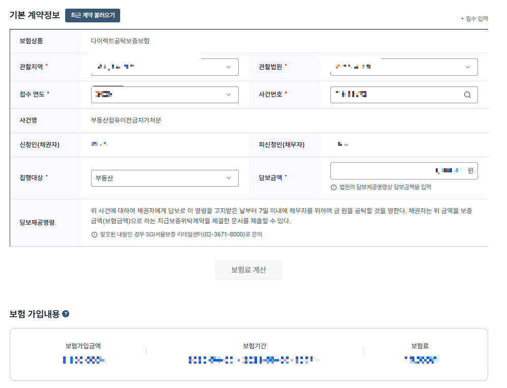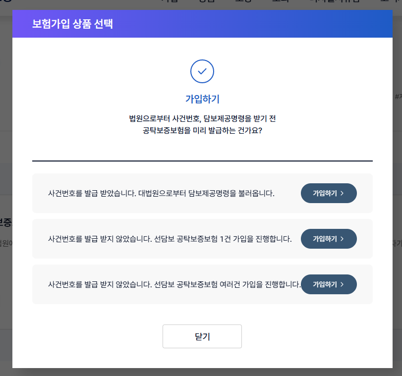 전 사건번호를 발급받고 담보제공명령을 받았기에 이 유형에 가입하기를 클릭했습니다.