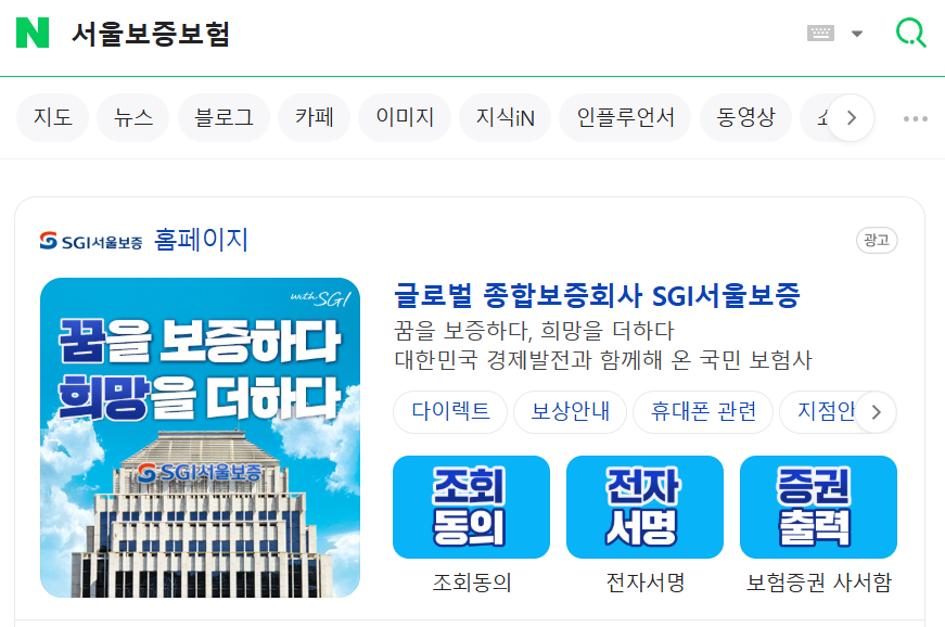 검색창에 '서울보증보험'을 입력 후 접속합니다.