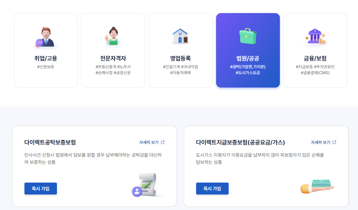 다이렉트 가입 중 '법원/공공'을 클릭합니다.