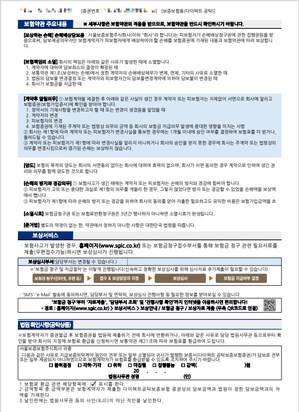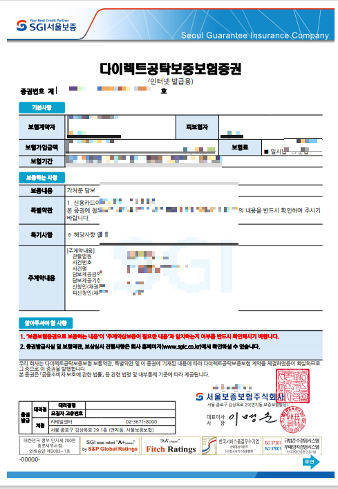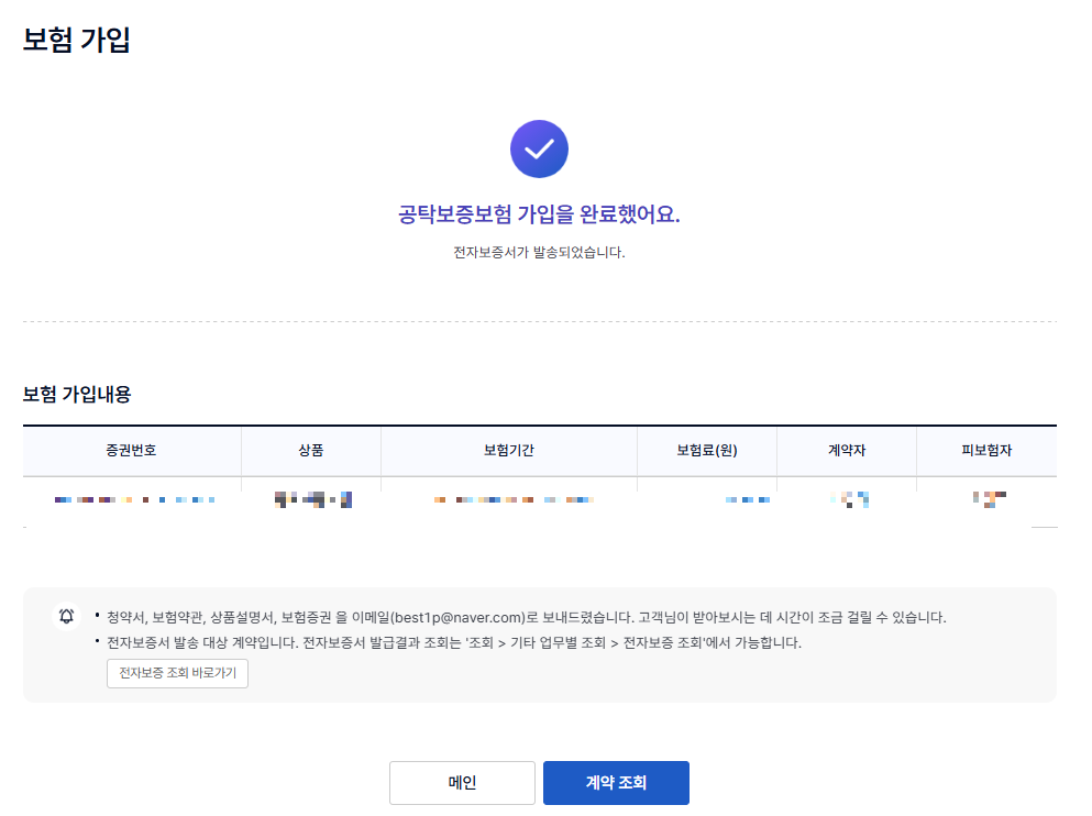 이렇게 되면 공탁보증보험에 가입이 완료됩니다.