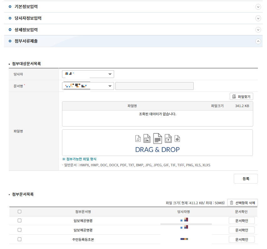 그럼 납입정보와 당사자 정보를 확인하고,