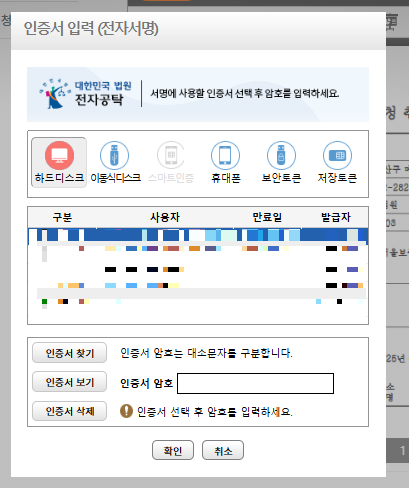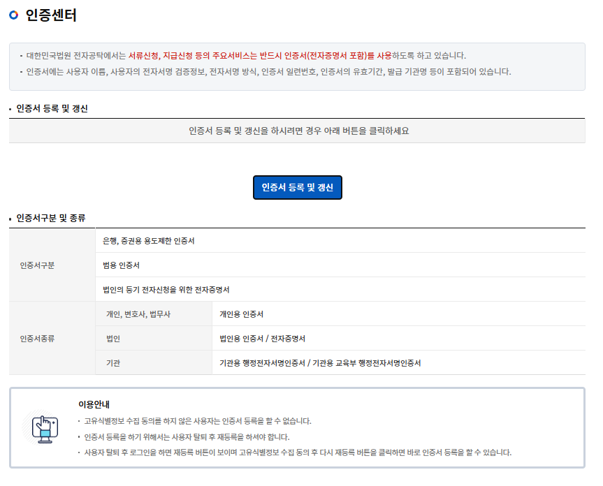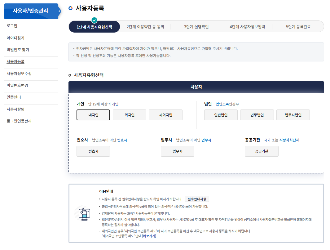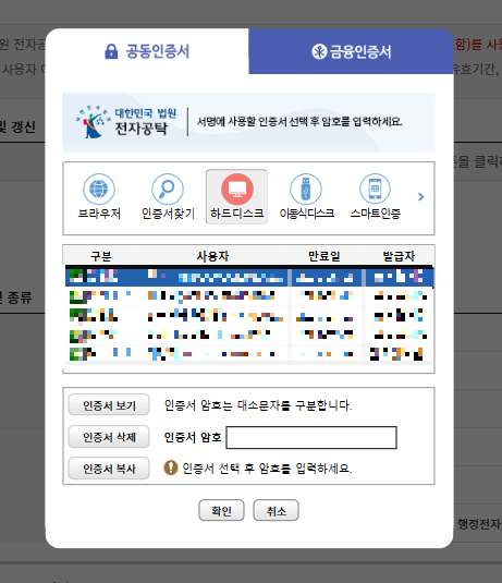 회원가입과 인증서를 등록해야 합니다.