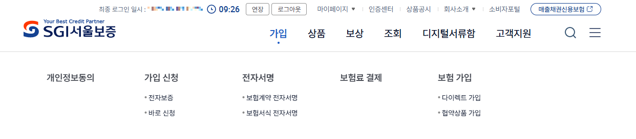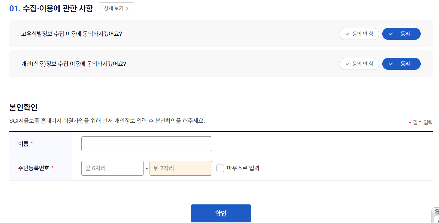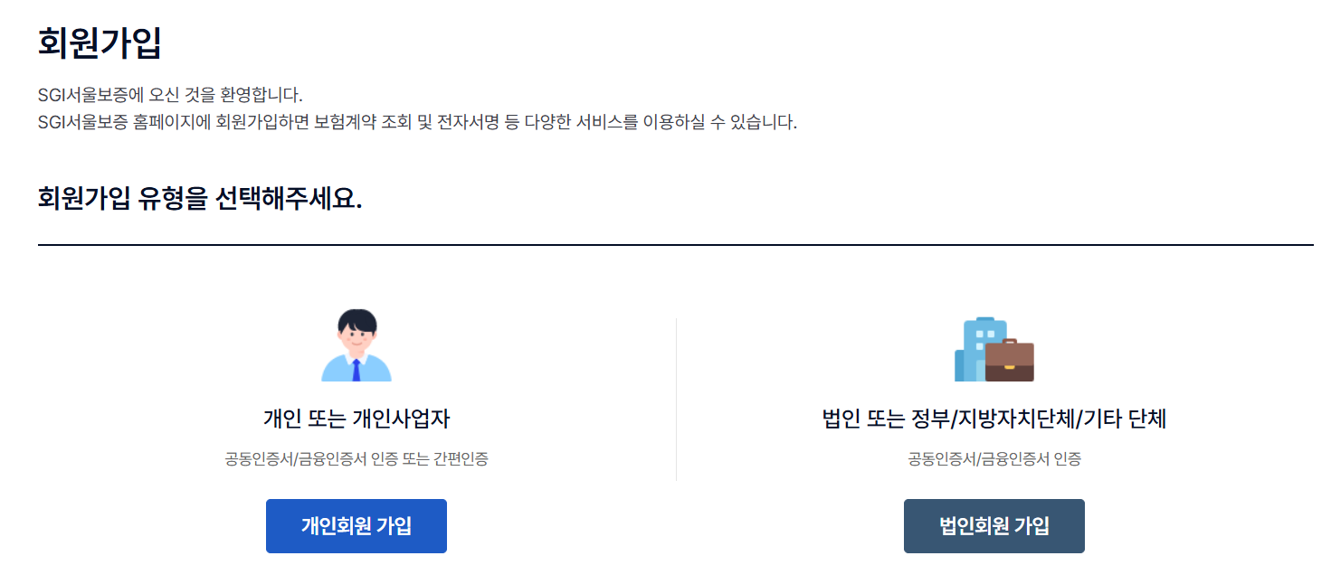 서울보증보험 홈페이지에서 회원가입을 합니다.
