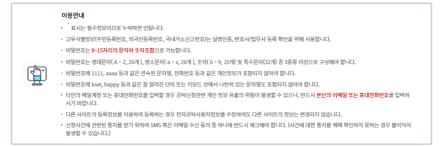 이용 유의사항을 확인 후 작성하시면 편리합니다.