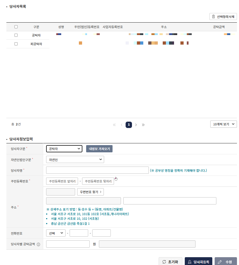 공탁유형, 신청종별, 관할법원, 공탁금액 등을 입력합니다.