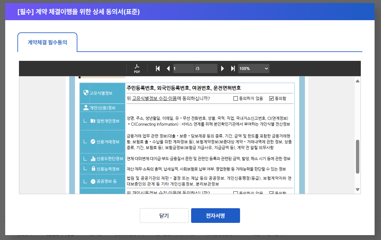 보험계약 전자서명을 위해