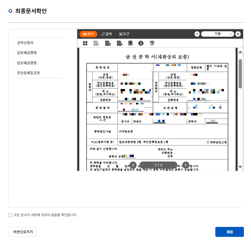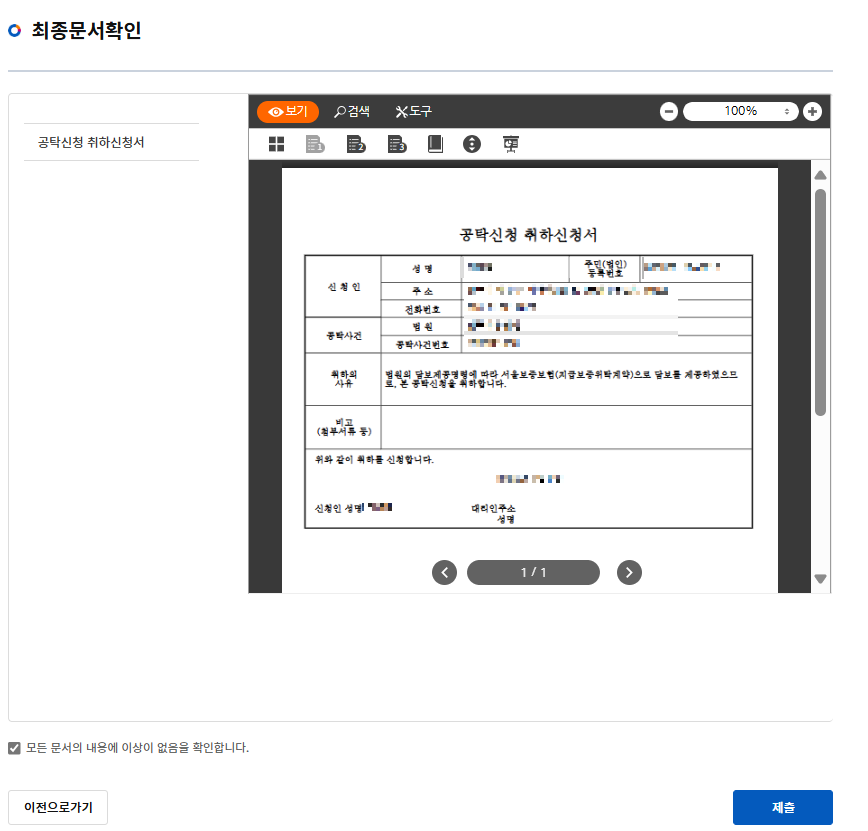 이렇게 최종 공탁신청 취하신청서를 '제출'하고