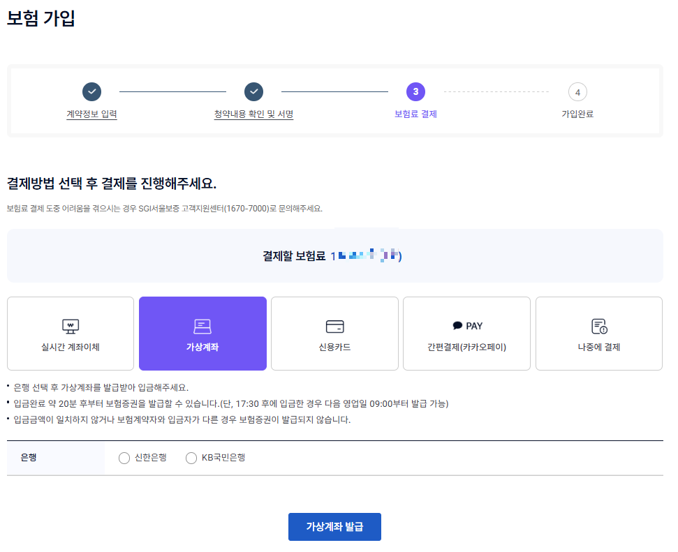 보험금 납부는 실시간 계좌이체, 가상계좌, 신용카드, 간편 결제 등으로 가능합니다.