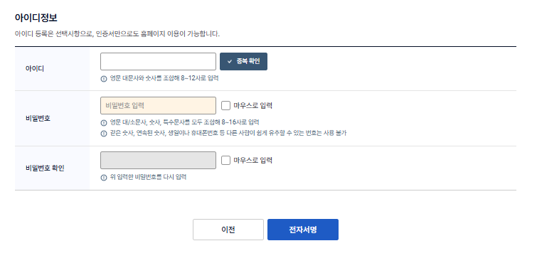 전자서명을 통해 회원가입을 완료합니다.