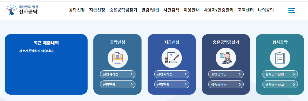공탁신청을 클릭합니다.