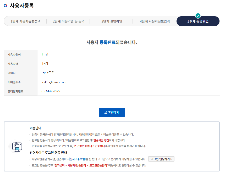 마지막으로 등록완료를 하시고 로그인을 합니다.