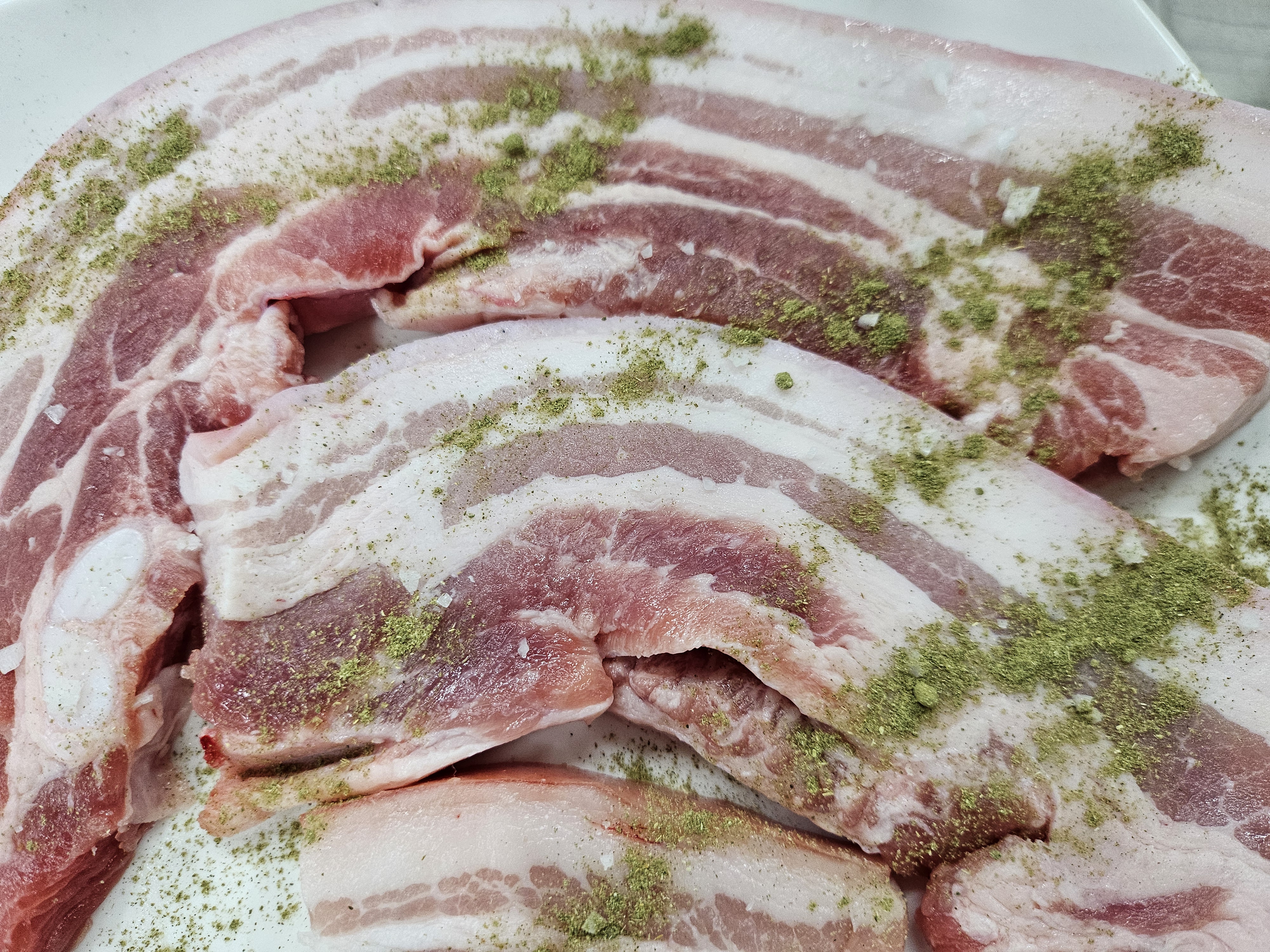 삼겹살에도 허브가루가 뿌려져 나옵니다.