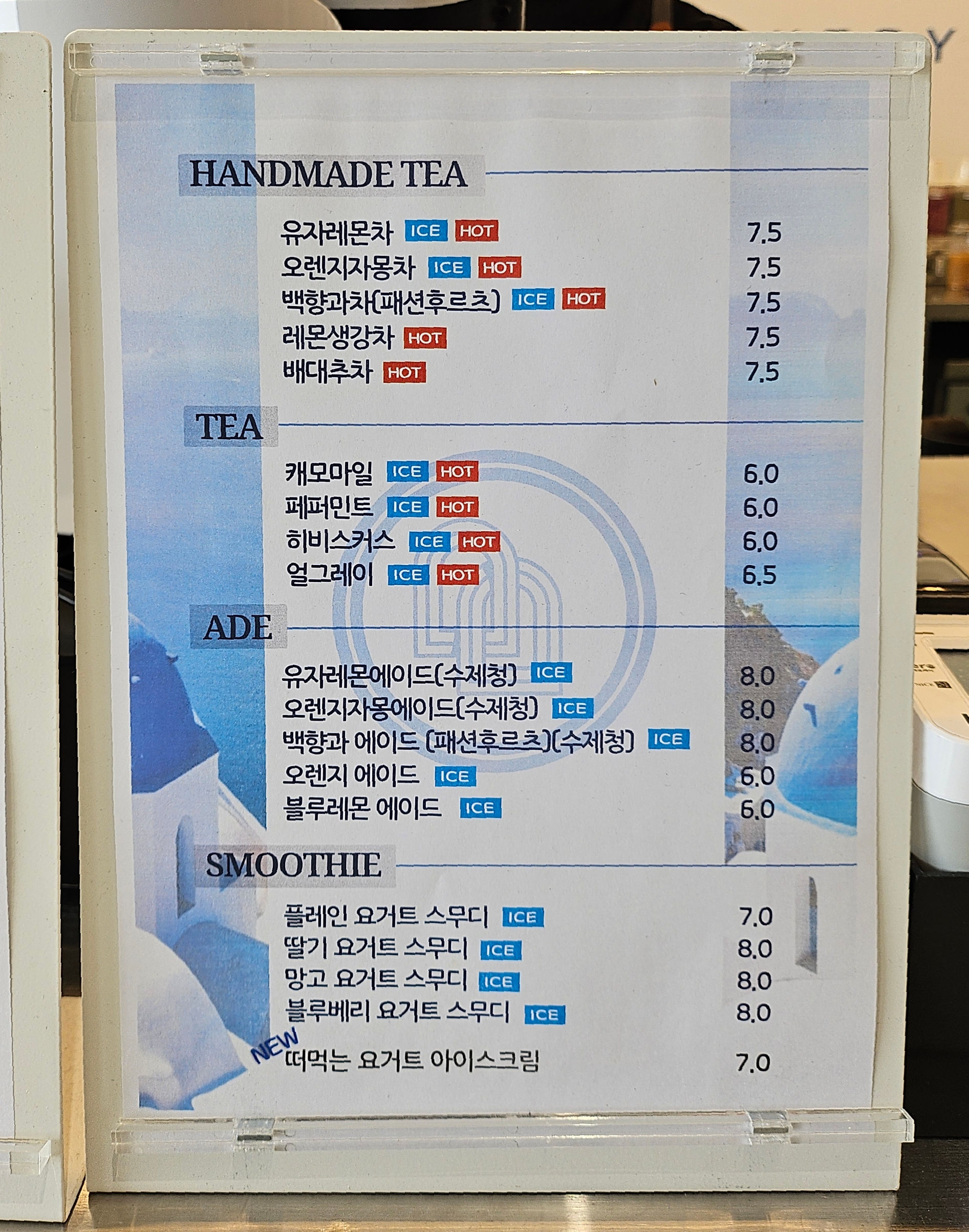 논커피, 티, 에이드, 스무디를 판매하고 있습니다.