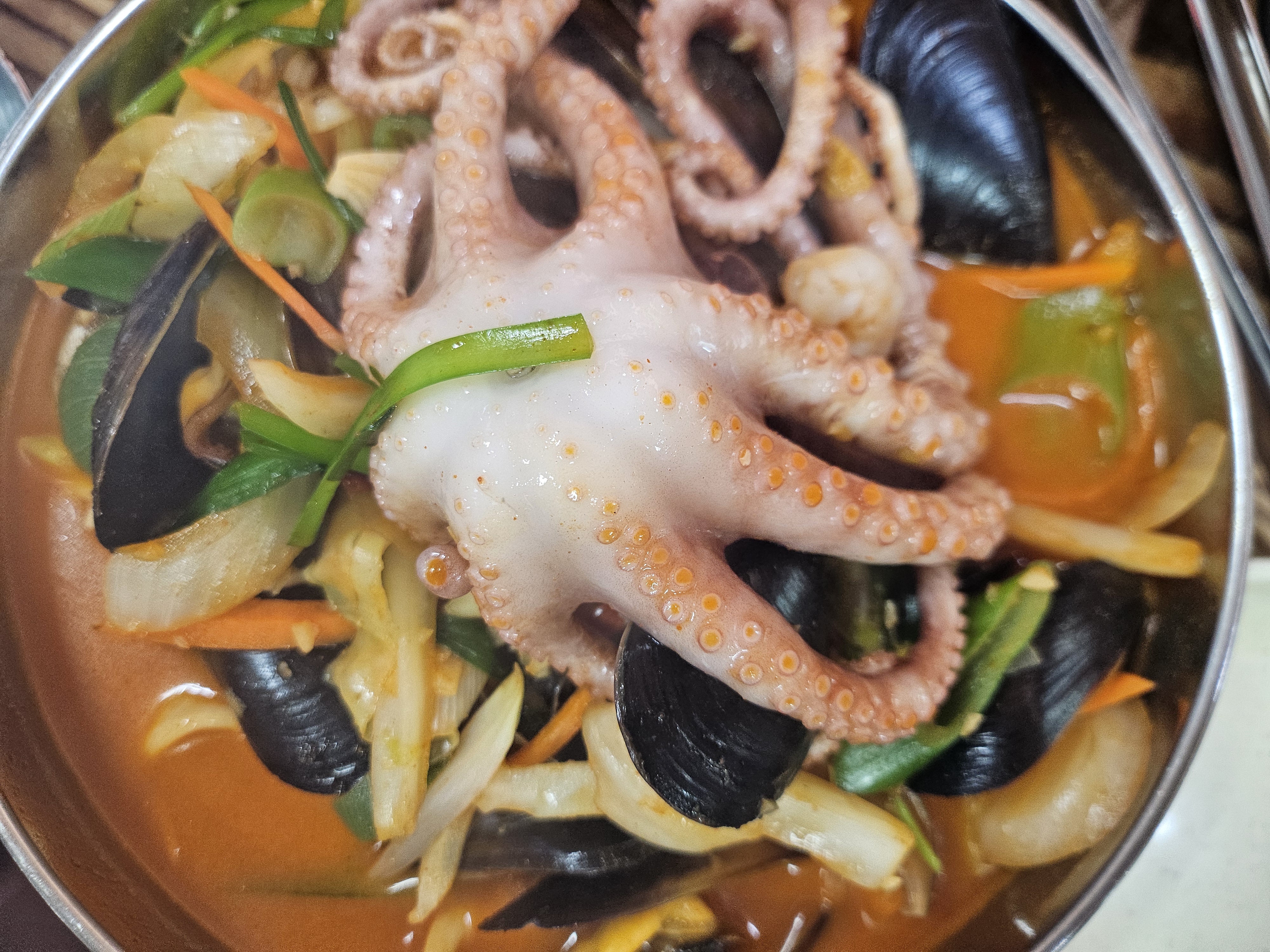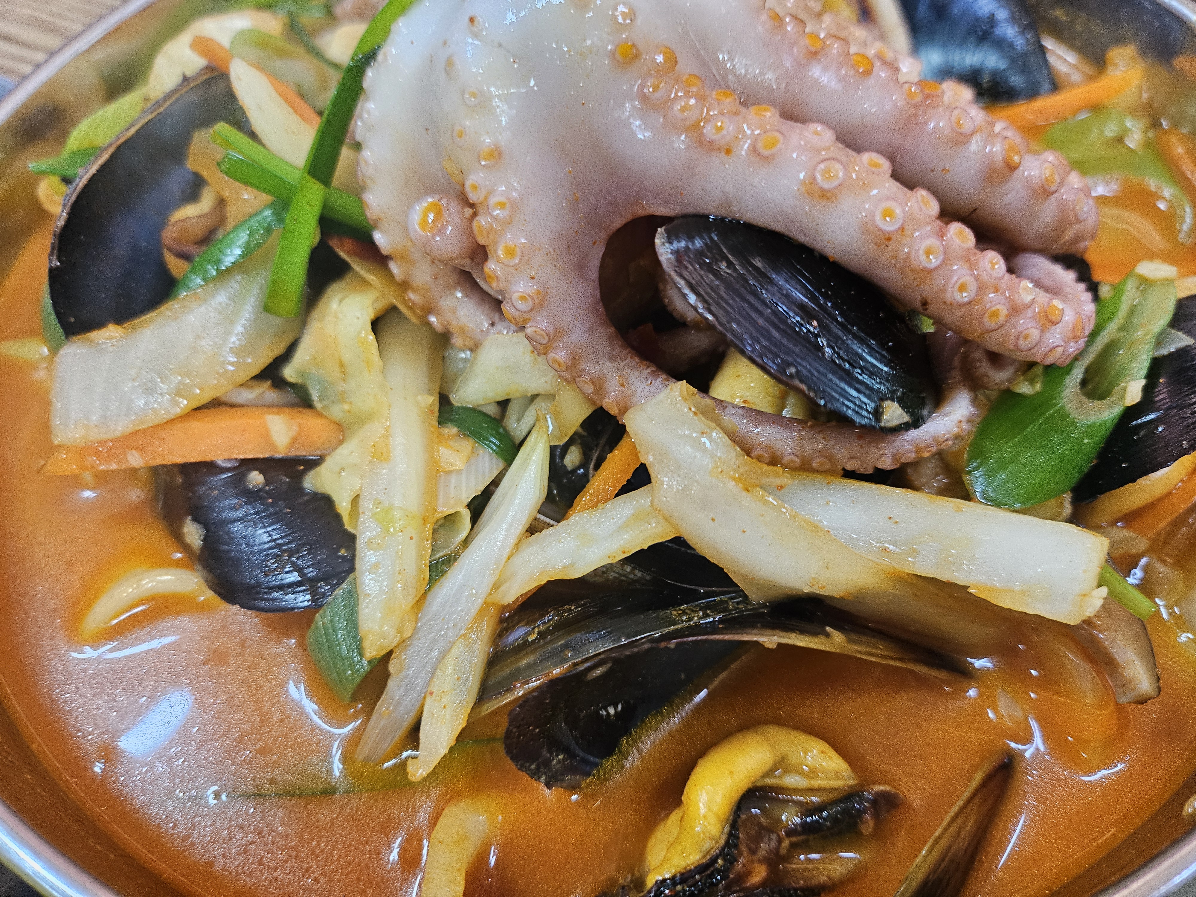 짬뽕 위에 낙지 한 마리가 통째로 올라가고