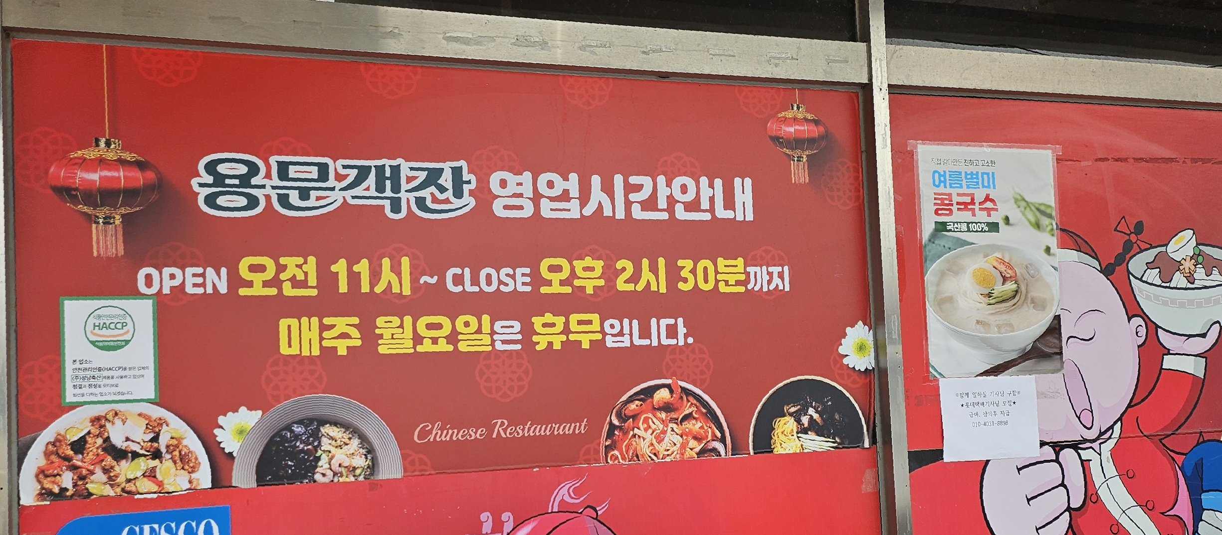 콩국수 9,000원/ 굴짬뽕(2인이상) 12,000원/ 굴짬뽕밥(2인이상 주문) 12,000원/