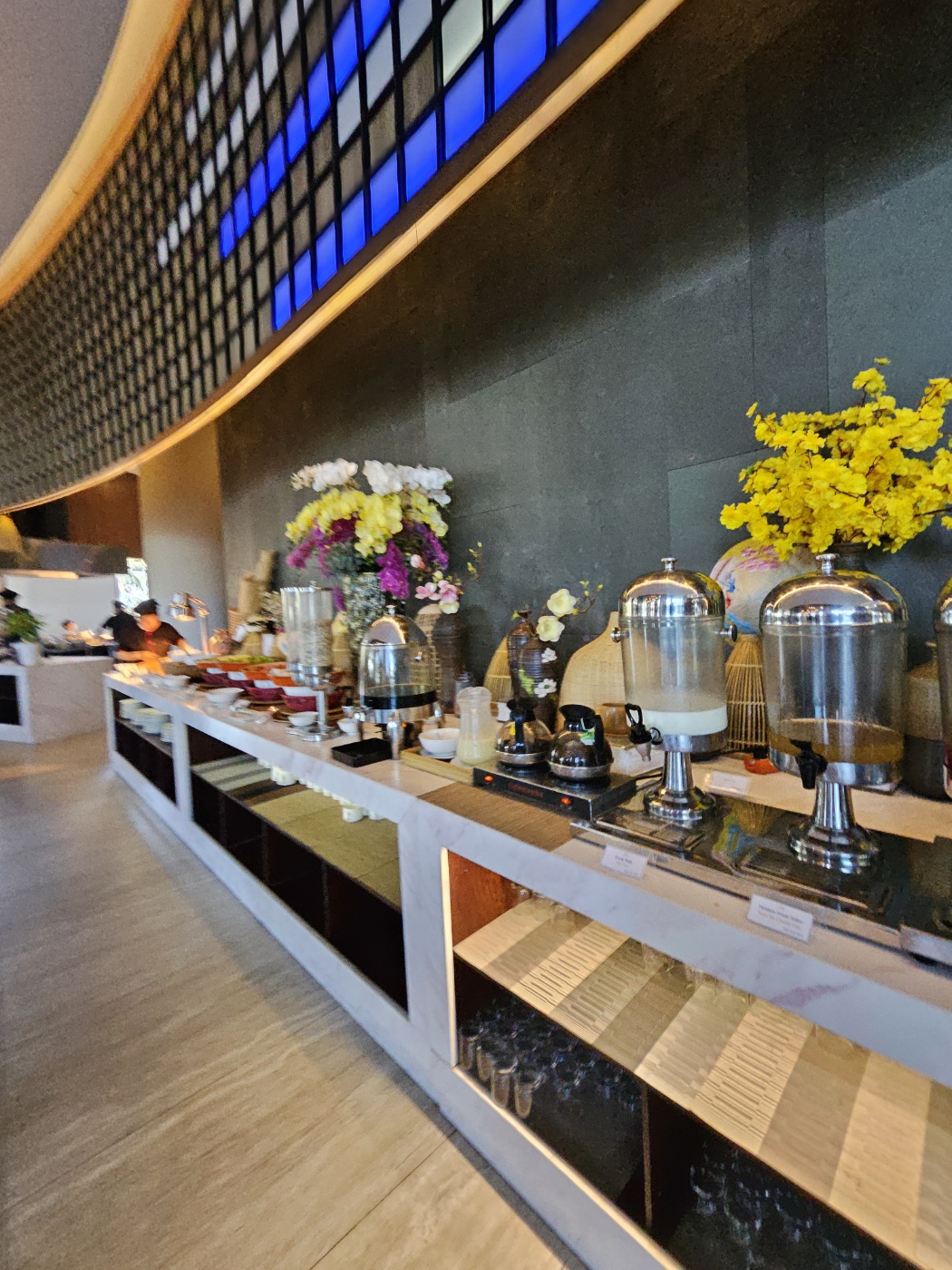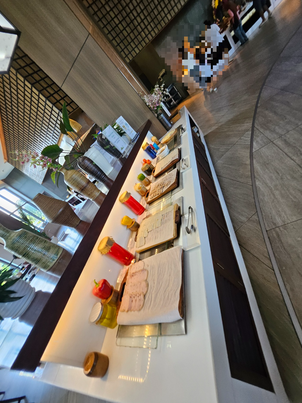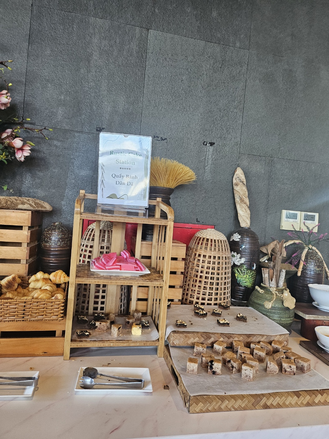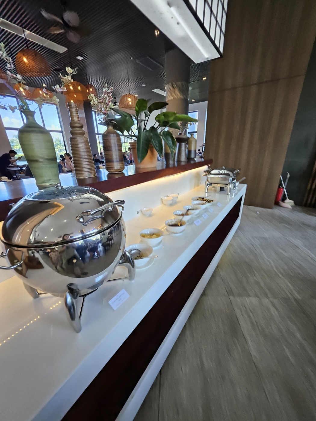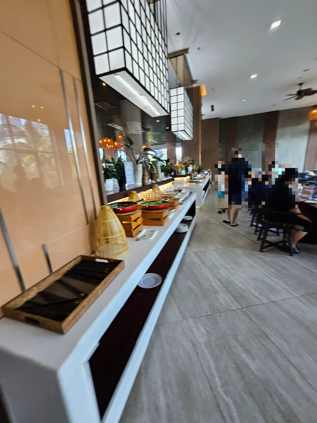 조식에서 생각나는 메뉴를 적어보자면 오믈렛, 쌀국수, 달걀프라이, 베이컨, 옥수수, 고구마, 시리얼, 요구르트, 팬케이크, 각종 빵, 디저트, 쌀밥, 계란밥, 죽, 샐러드, 치즈, 수박, 파인애플, 용과, 구아바, 망고주스, 수박주스, 오렌지주스, 물, 커피, 연유, 해쉬포테이토, 각종 햄, 각종 따뜻한 음식 등입니다.