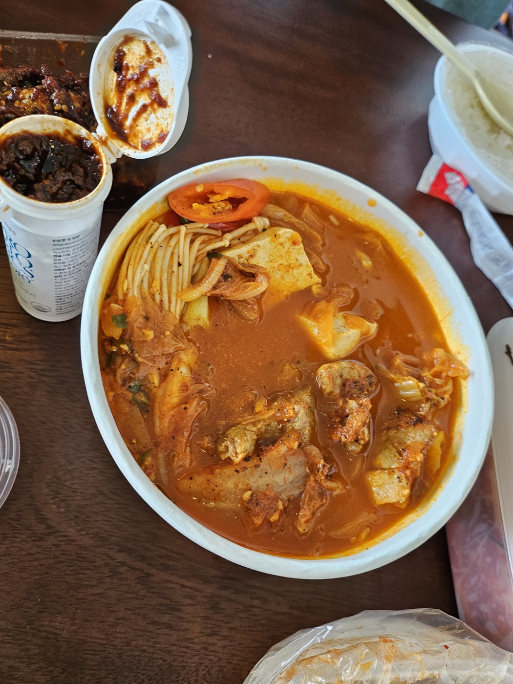 한국인들이 좋아할 만한 갈비찜, 찜닭 같은 메뉴도 보였고 김치가 있어 좋았습니다.
