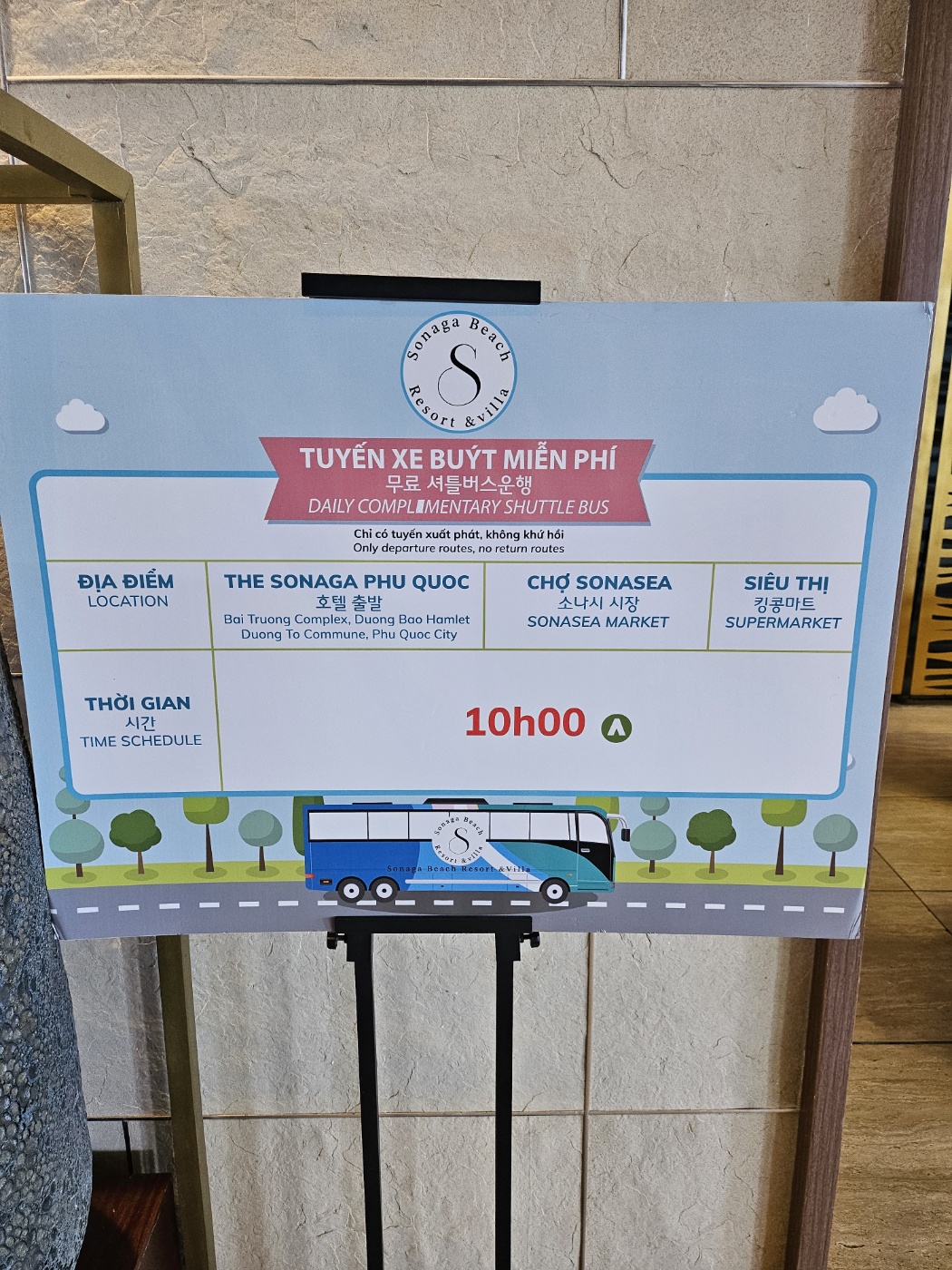소나가 비치 리조트 앤 빌라에서는 오전 10시 정각에 소나시시장과 킹콩마트를 이동하는