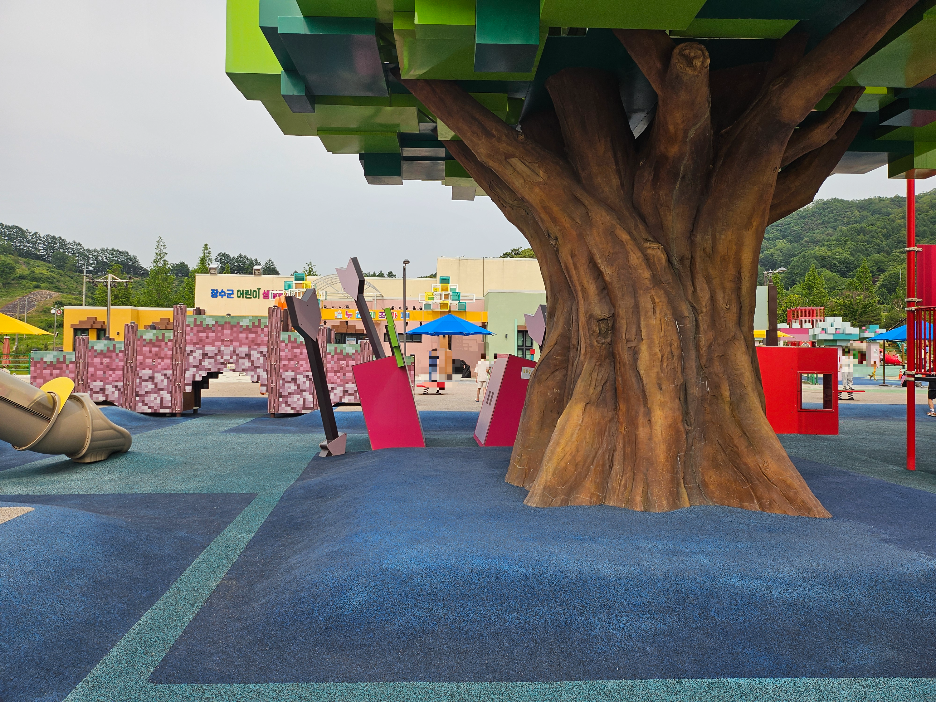 거대한 나무, 미끄럼틀, 각종 놀이시설로