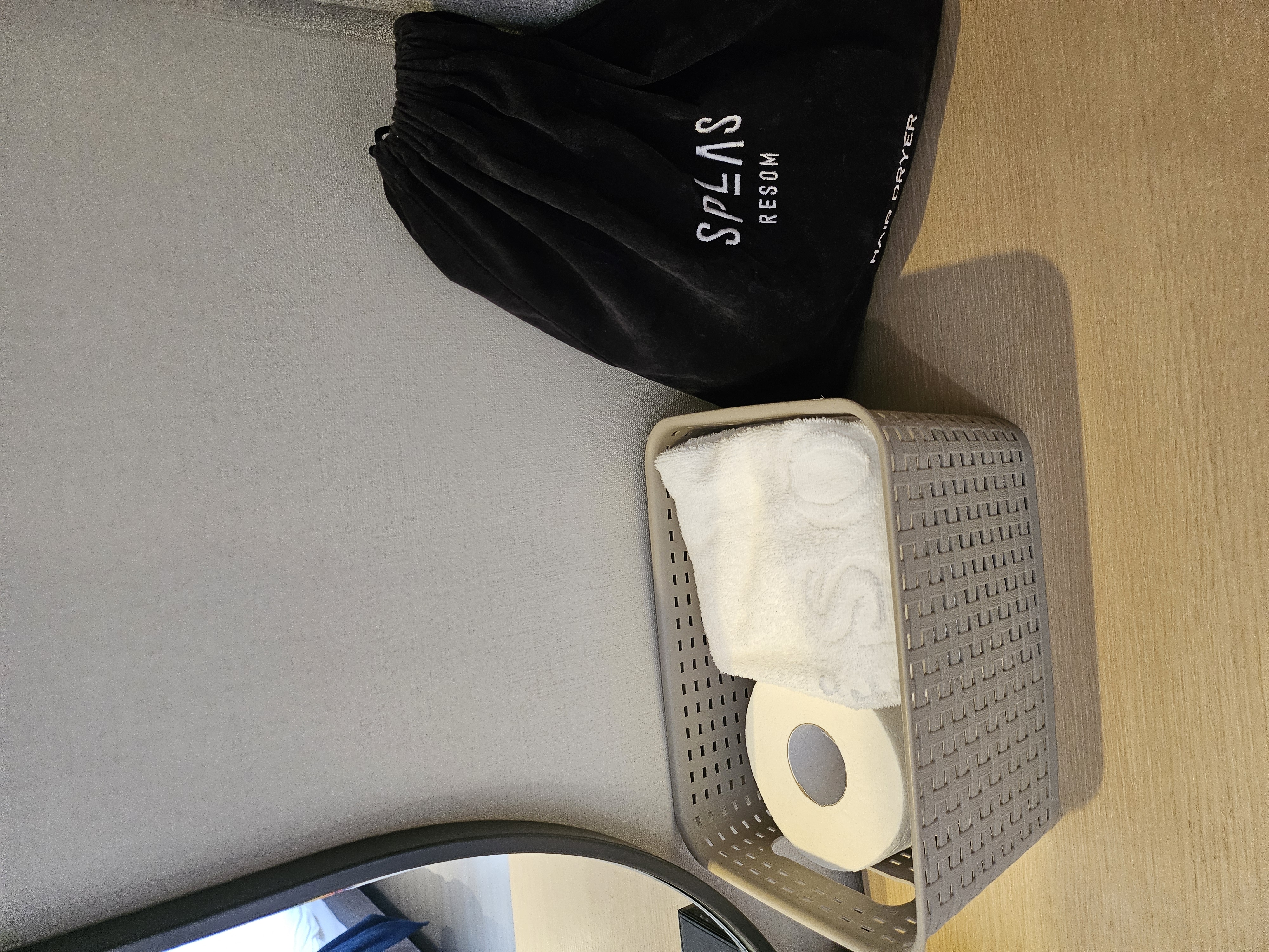 수건, 비상용 휴지도 깔끔하게 비치되어 있습니다.