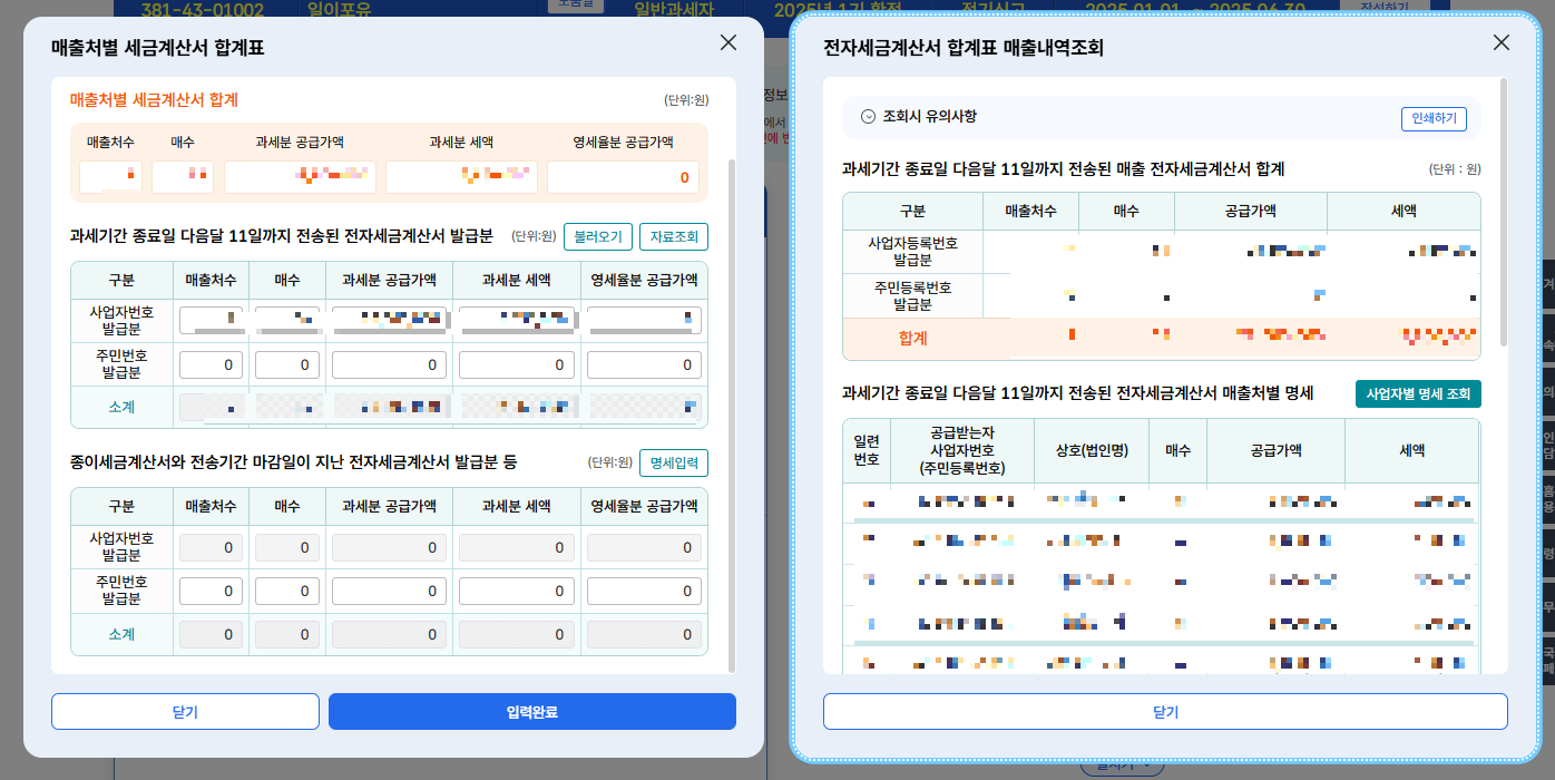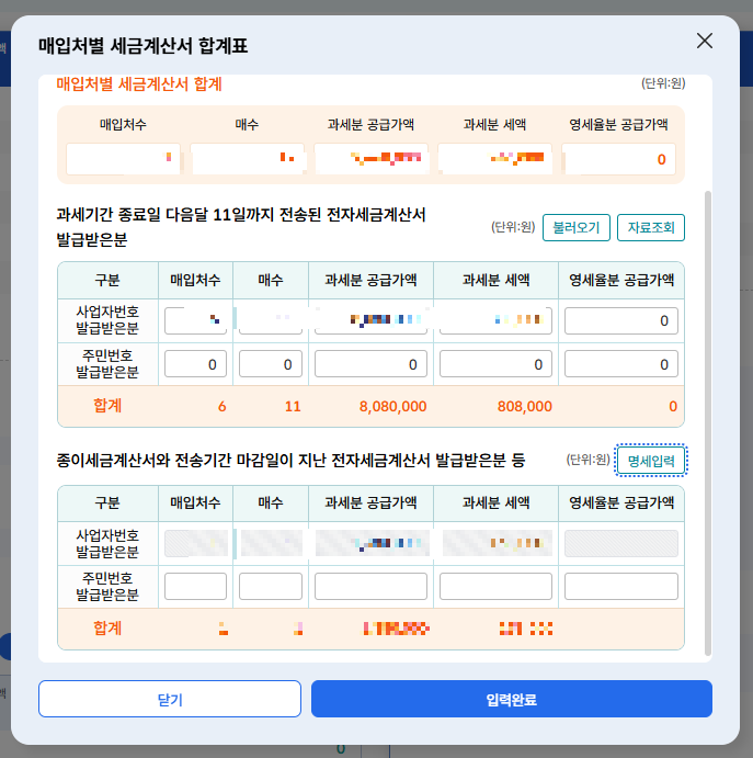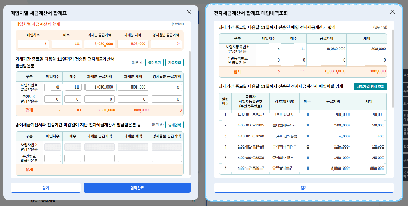 그럼 제일 윗부분에 전자세금계산서로 받은 매입처 수와
