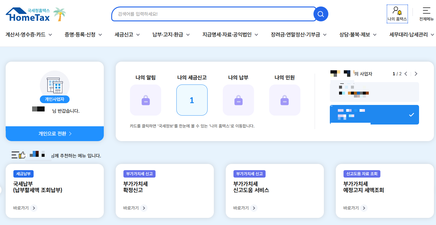 상반기인 1월 1일~6월 30일까지의 1기 확정신고는 7월 1일~7월 25일까지,