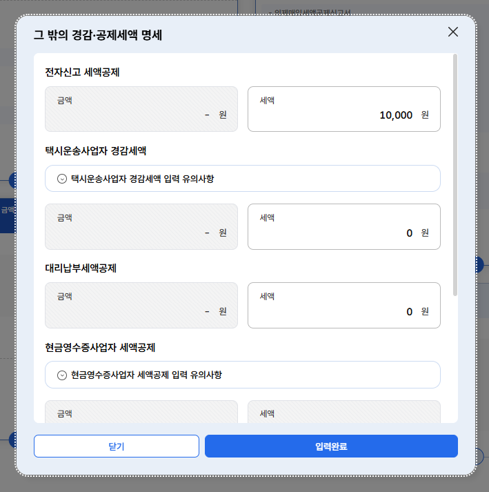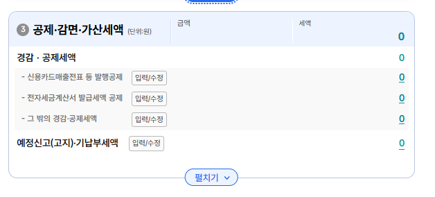 이제 공제, 감면, 가산세액을 입력해야 합니다.