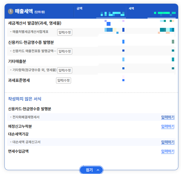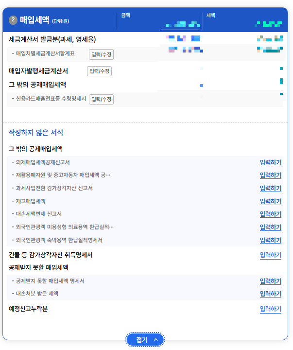 부가가치세의 매출 매입 등의 입력현황을