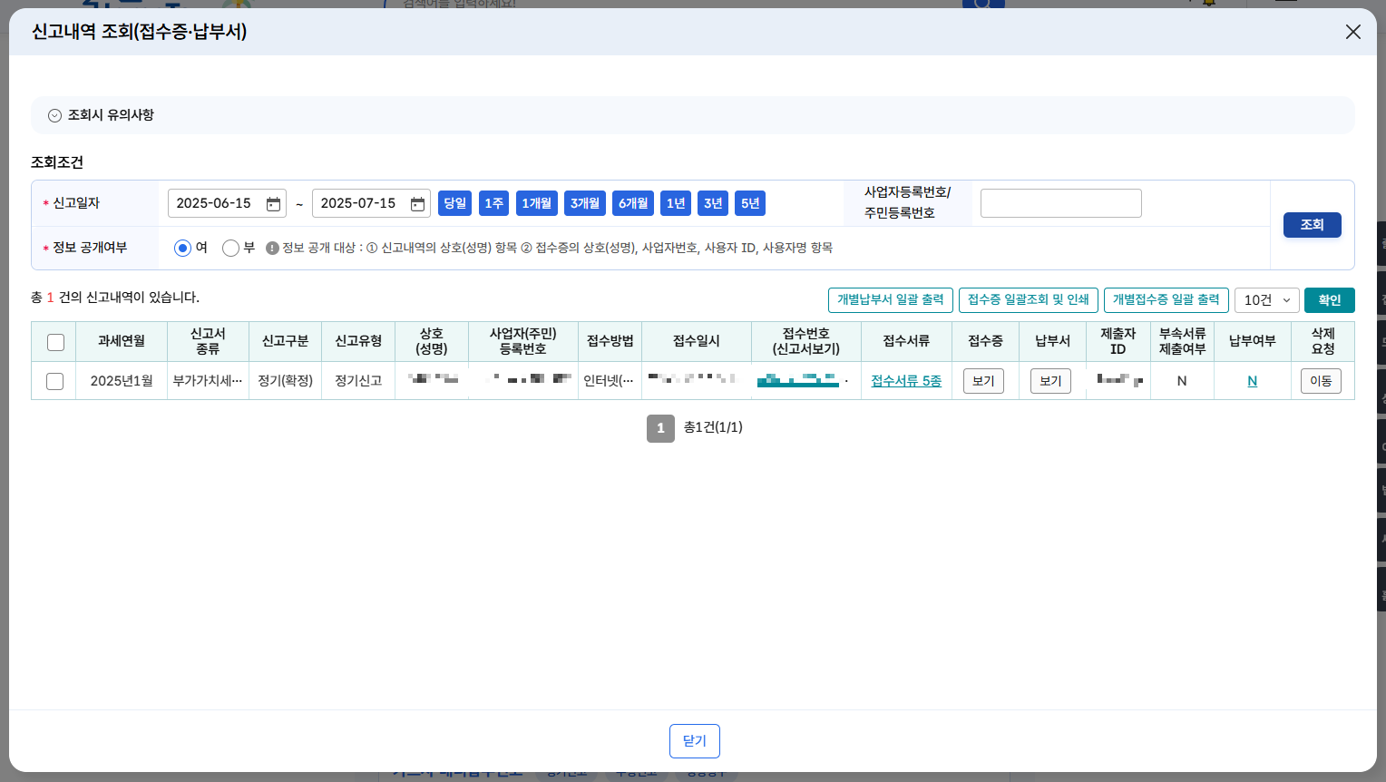 신고서를 통해 납부서와 신고서 접수증도 볼 수 있습니다.