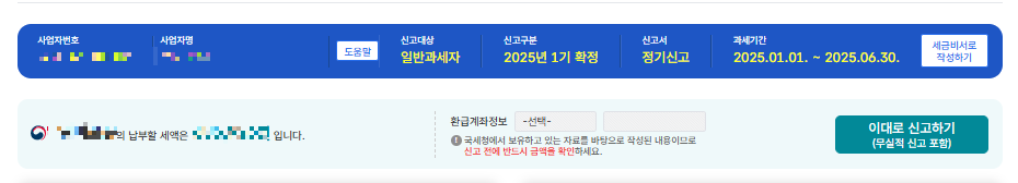 위에 적었듯 개인 일반 과세자는 예정신고 없이 연 2회의 확정신고만 있고