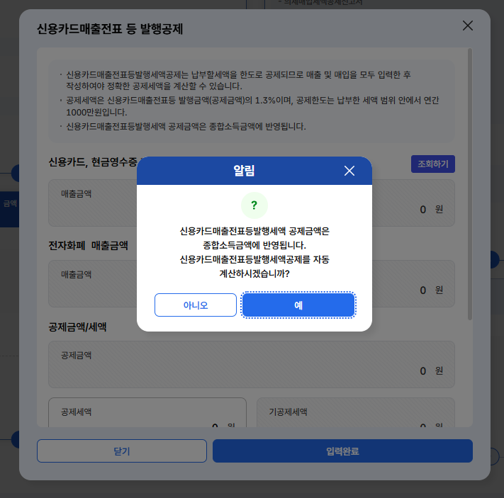 신용카드 매출전표 등 발행공제에 입력을 클릭하시고