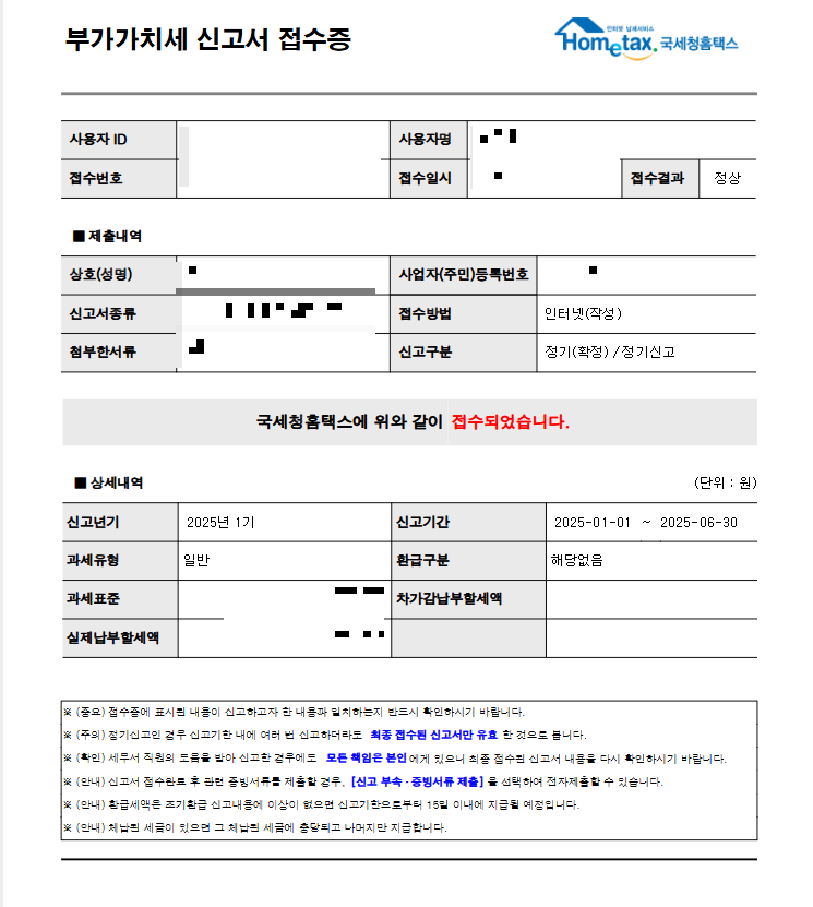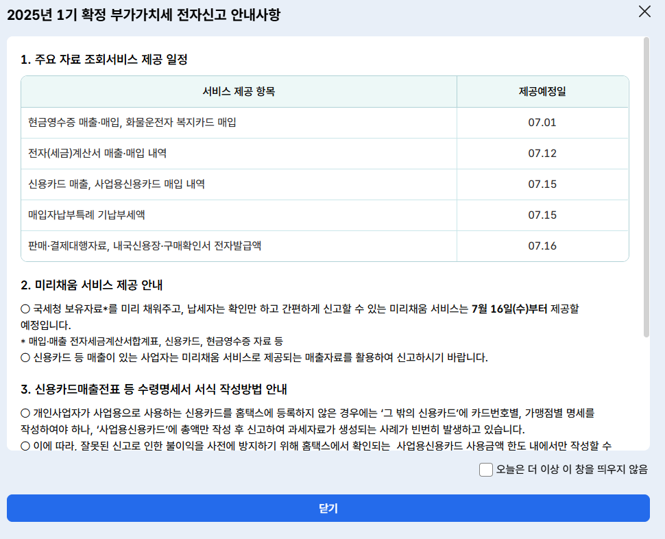 상반기인 1월 1일~6월 30일까지의 1기 확정신고는 7월 1일~7월 25일까지,