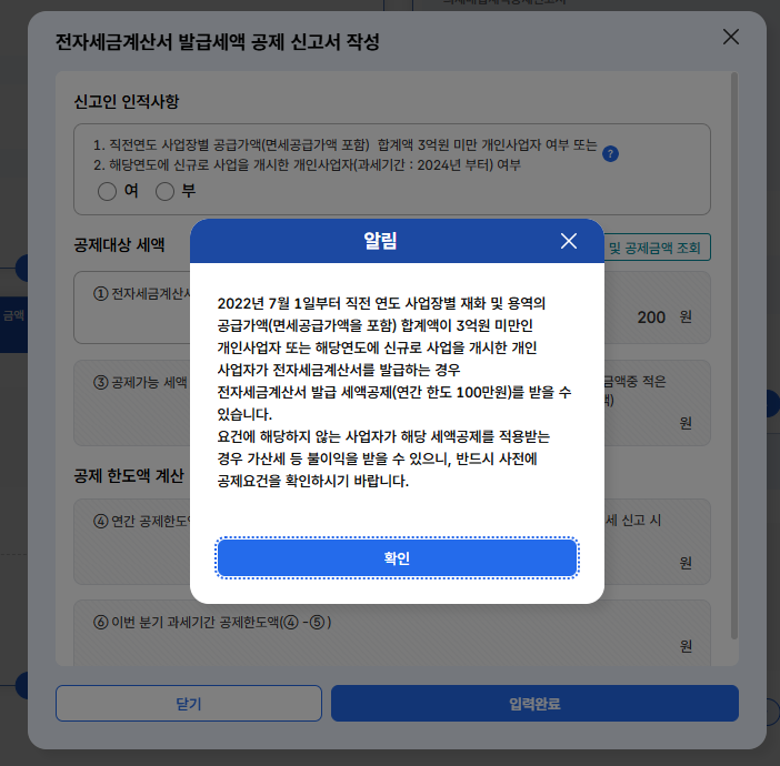 전자세금계산서 발급세액 공제는 직전연도 사업장별 면세공급가액을 포함한 공급가액 합계액이