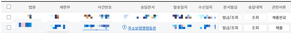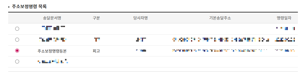 들어가서 보시면 피고의 최신정보로 주소를 보정하라는 명령서가 있습니다.